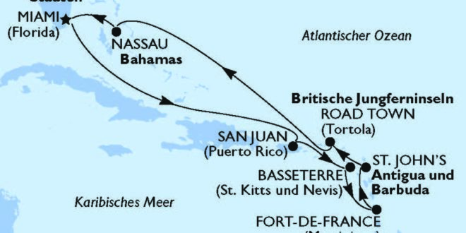 - Nutzung der Bordreinrichtungen wie Pools, Whirlpools und Wasserrutschen sowie ein Unterhaltungsprogramm.