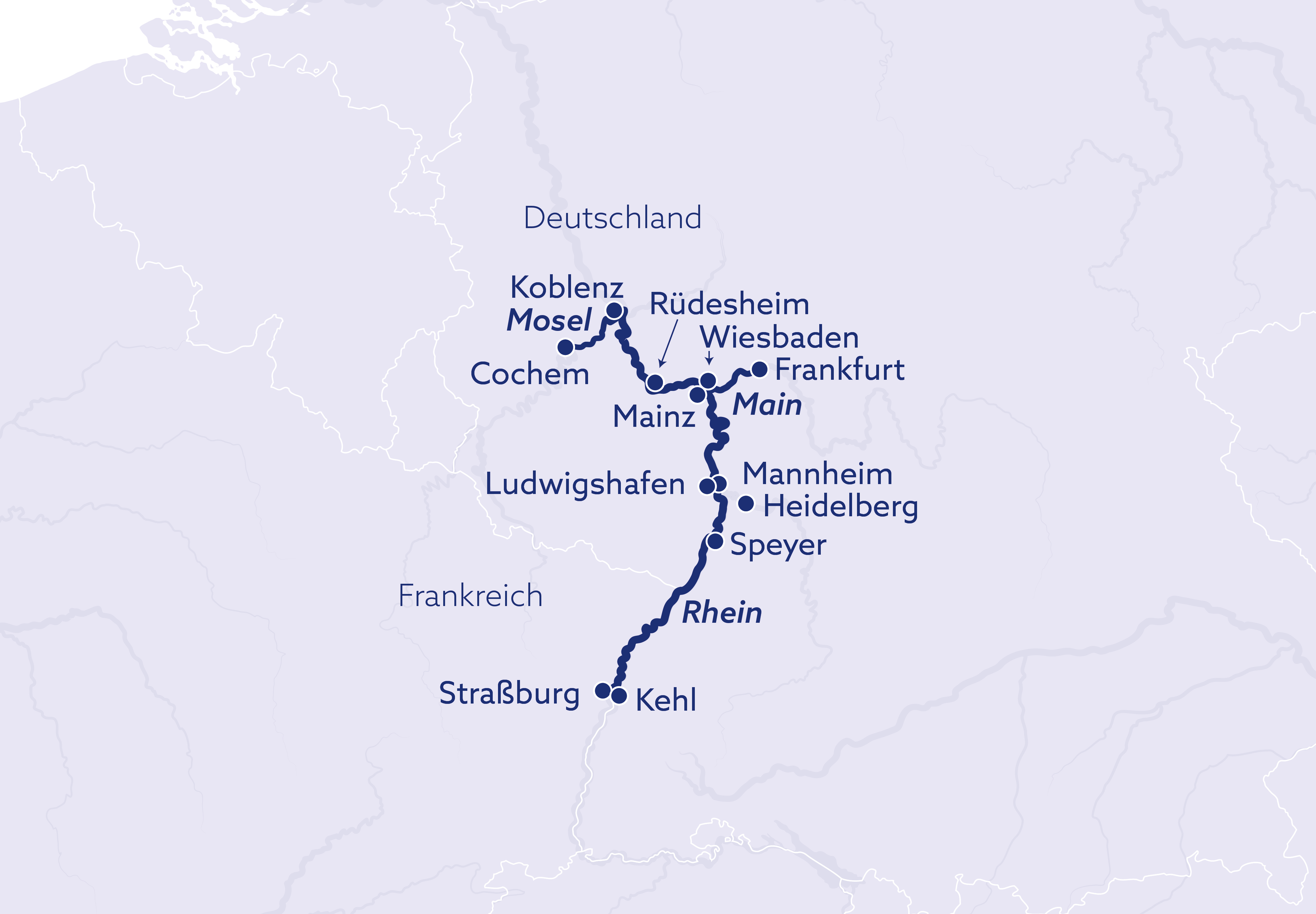 Reiseverlauf 8 Tage | Frankfurt • Straßburg • Cochem • Frankfurt